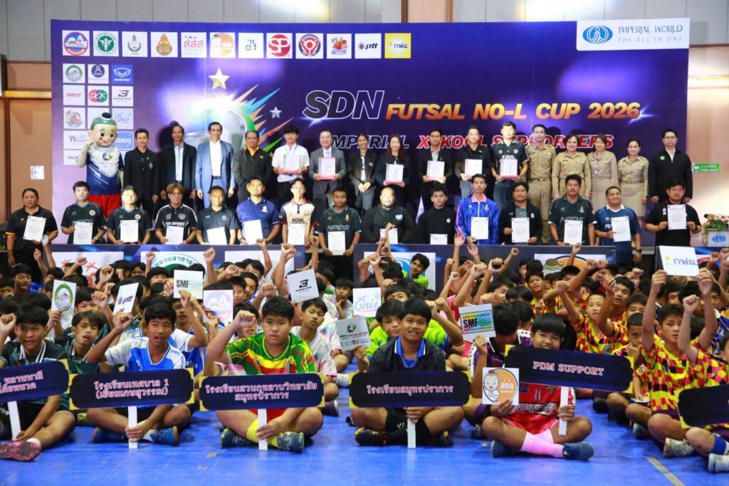 สำนักงานกองทุนสนับสนุนการสร้างเสริมสุขภาพ (สสส.) ร่วมกับเครือข่ายองค์กรงดเหล้า และภาคีเครือข่ายจังหวัดสมุทรปราการ เปิดฉากการแข่งขันฟุตซอลเยาวชน “SDN FUTSAL NO – L CUP 2026” รุ่นอายุไม่เกิน 15 ปี ภายใต้แนวคิด “เพื่อนกัน มันส์โนแอล ไม่ดื่ม ไม่สูบ ไม่เสพ ไม่พนัน” ชิงถ้วยเกียรติยศผู้ว่าราชการจังหวัด ณ ศูนย์การค้าอิมพีเรียลเวิลด์สำโรง เพื่อเฟ้นหาตัวแทนสู่ระดับประเทศ