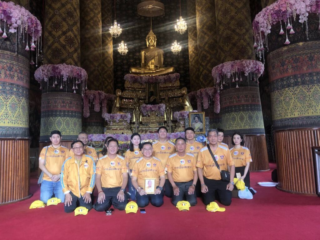 07.30 น. หัวหน้าพรรคไทยชนะ นายจักรพงศ์ ชื่นดวง พร้อมด้วยทีมผู้บริหารและผู้สมัครสส.กรุงเทพมหานครฯ