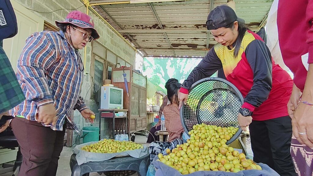 นางแสงเดือนฯ บอกว่า พุดซา 3 รสที่ปลูกเอาไว้ ตอนนี้มีอยู่ประมาณ 300 ต้น บนพื้นที่ 4 ไร่ ตอนนี้เข้าสู่ปีที่ 4 แล้ว กำลังให้ผลผลิตดกเต็มต้น เก็บขายได้วันละประมาณ 100 กิโลกรัม แต่ด้วยความที่ตัวเองใช้คนในบ้านเก็บกันเอง เลยไม่สามารถเก็บผลผลิตได้ทัน จนมีร่วงหล่นไปจำนวนมาก เพราะปีนี้สภาพอากาศเหมาะสม มีฝนพอประมาณพอดีกับความต้องการน้ำของพุดซา รวมถึงสภาพดินที่เป็นดินทราย ทำให้ได้ผลผลิตดีและมีรสชาติเป็นที่ถูกใจของลูกค้า ประเมินว่าปีนี้น่าจะได้เงินจากการจำหน่ายพุดซาแปลงนี้ไม่น้อยกว่า 1 แสนบาท