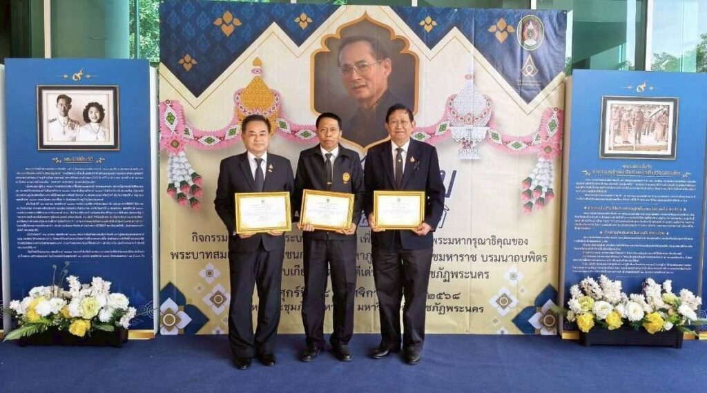 นายสลากุล ประเสริฐดี, นายปิยะศักดิ์  พงศ์อัมพรศักดา และนายปรกธณ  แสงนิล  ได้รับมอบเกียรติบัตร”พ่อดีเด่นแห่งชาติราชภัฎพระนคร”  ครั้งที่ ๑๐ พฤศจิกายน 2568  เนื่องในโอกาสกิจกรรมวันคล้ายวันพระราชสมภพ พระบาทสมเด็จพระบรมชนกาธิเบศร มหาภูมิพลอดุลยเดชมหาราช บรมนาถบพิตร  วันพ่อแห่งชาติ  ณ หอประชุมภัทรมหาราช วิทยาลัยราชภัฎพระนคร