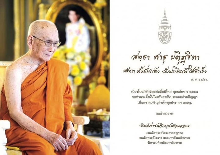 พร้อมด้วยพรประทานว่า “เนื่องในอภิลักขิตสมัยขึ้นปีใหม่ พุทธศักราช 2568 ขอท่านจงตั้งมั่นในศรัทธาอันประกอบด้วยปัญญา เพื่อความเจริญสำเร็จทุกประการ เทอญ.”