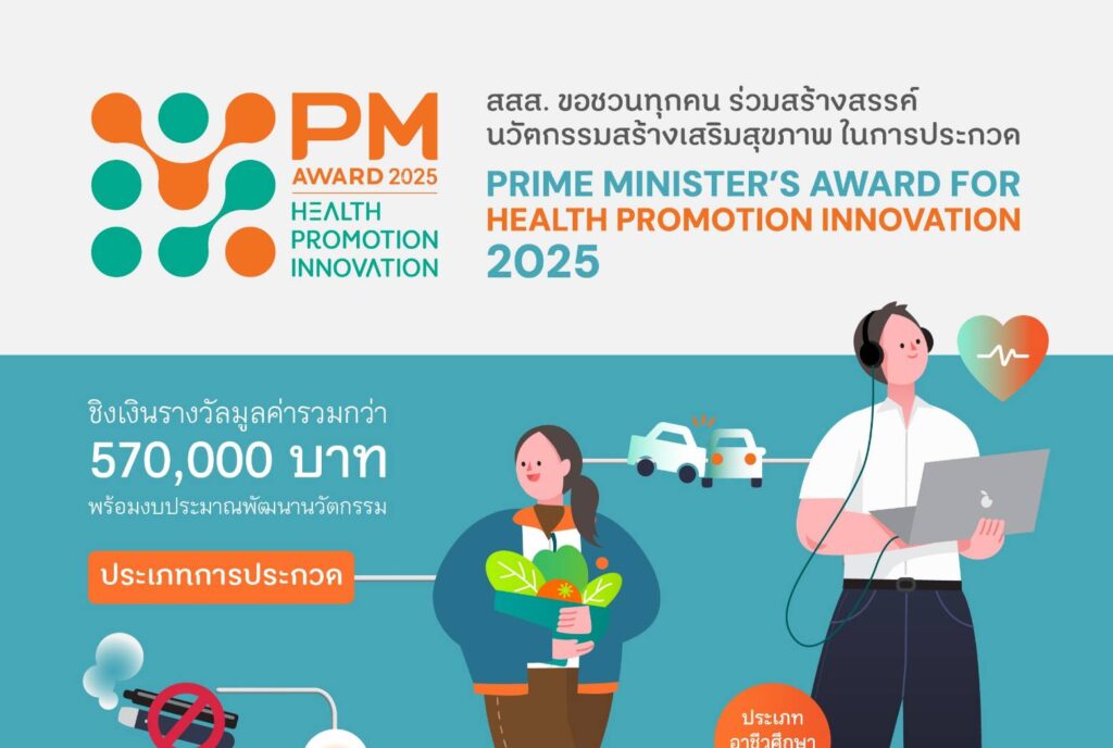 กลับมาอีกครั้ง! กับการประกวด Prime Minister’s Award for Health Promotion Innovation 2025 เวทีเฟ้นหาสุดยอดไอเดียสร้างสรรค์นวัตกรรมสร้างเสริมสุขภาพ ชิงรางวัลมูลค่ารวมกว่า 5.7 แสนบาท