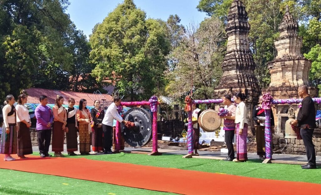 ผู้ว่าฯศรีสะเกษ ลั่นฆ้อง-กลอง-ระฆัง เปิดงานสืบสานตำนานพันปีประเพณีไหว้พระธาตุ ปราสาทบ้านปราสาท อ.ห้วยทับทัน สุดยิ่งใหญ่