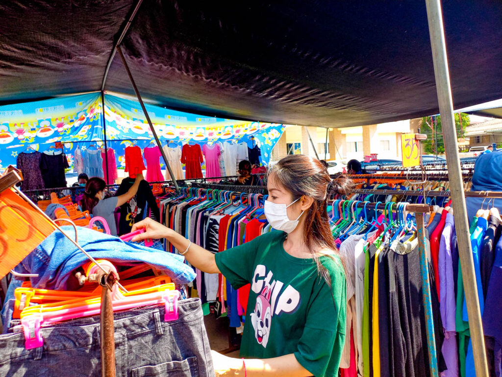 – ควรสวมผ้าปิดจมูกขณะเลือกซื้อ เพื่อป้องกันการสูดฝุ่นละอองที่มากับเสื้อผ้า