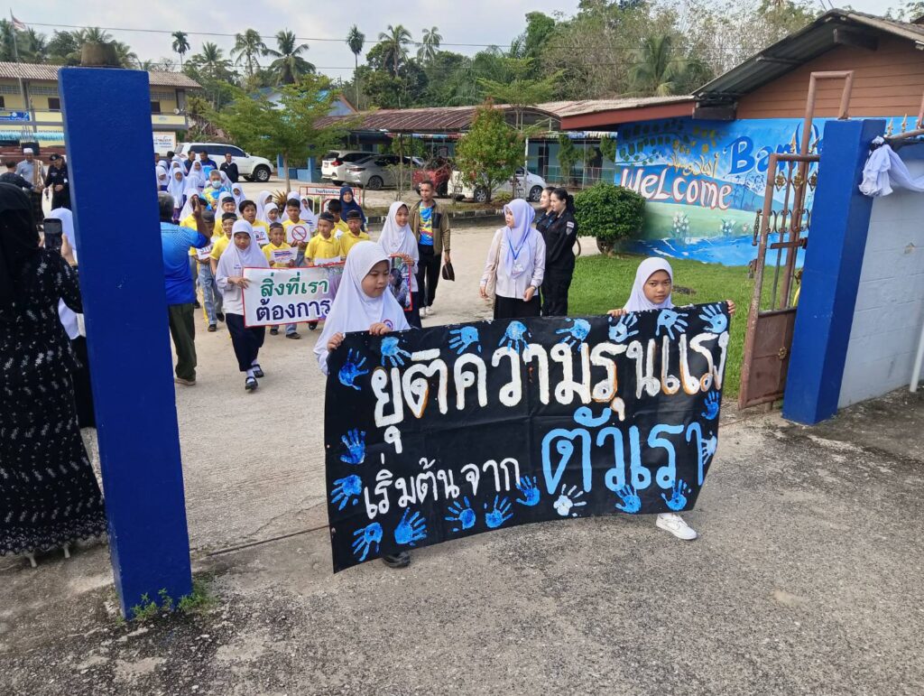 การเดินขบวนของพี่น้องประชาชน นักเรียนนักศึกษา วันนี้ จะเห็นได้ว่า ทุกคนมีความตั้งใจ เดินถือป้ายรณรงค์  “ไม่เอา ความรุนแรง ไม่เอา ผู้ก่อการความไม่สงบ” โดยเดินขบวนถือป้ายจากโรงเรียนเป็นในระยะทาง 1,500 เมตร จากนั้นก็ไปทำการละหมาดฮาญัตเพื่อขอต่ออัลลอฮ์ ให้ประทานในสิ่งที่ปรารถนาสำเร็จเป้าหมายหรือปลดเปลื้องความทุกข์ ที่ปั้มน้ำมันที่ซึ่งเป็นที่เกิดเหตุวางระเบิดจนทำให้ทรัพย์สินเสียหาย
