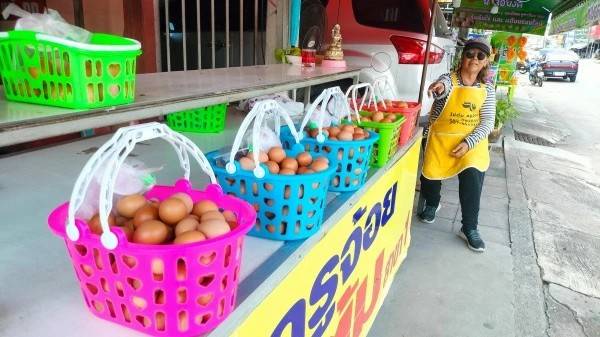นางสุจิตรา ยังบอกอีกว่าในช่วงปกติทางร้านจะขายไข่ต้มขนาดตะกร้าละ 100 ฟองได้ประมาณวันละ 20 ตะกร้า ส่วนในช่วงวันหยุดหรือเทศกาลต่างๆ จะขายได้ถึงวันละ 30 ตะกร้า แต่ปัจจุบันยอดขายได้ไม่เกินวันละ 10 ตะกร้า โดยเฉพาะในวันนี้ที่ใกล้จะหมดวันแล้วทางร้านเพิ่งขายได้แค่เพียง 9 ตะกร้าเท่านั้น