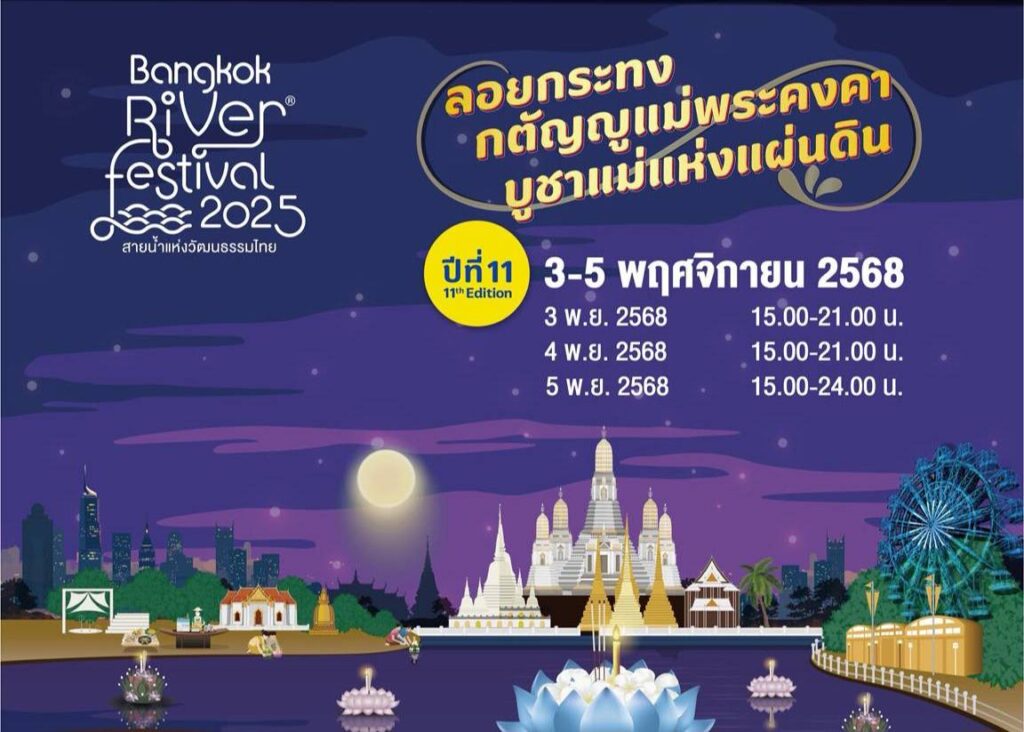 Join in preserving the tradition of Loi Krathong at the 4 contemporary piers along the Chao Phraya River at the Bangkok River Festival 2025 – the 4th edition of Thai cultural River Festival 💦
