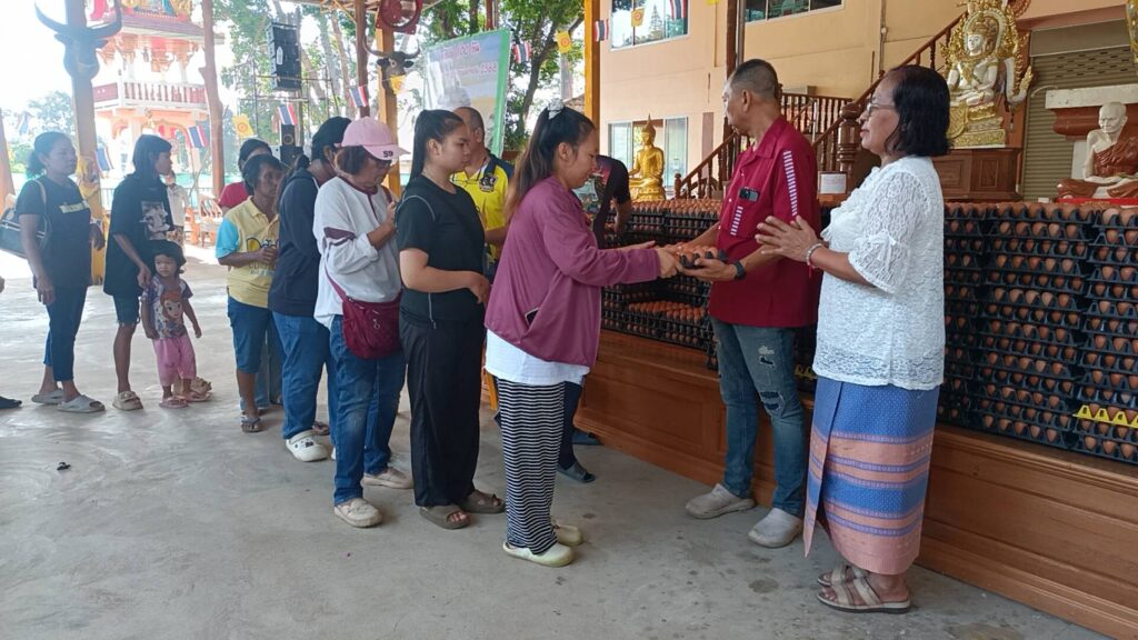 ปราจีนบุรี – แม่ทำบุญใหญ่ครบร้อยวันตายอุทิศส่วนบุญกุศลให้ลูกสาวเสียชีวิตกระทันหันจากการประสบอุบัติเหตุแจกไข่ 1,500 แผง หมูหัน 5 ตัวล็อตเตอร์รี่ 500 ใบ