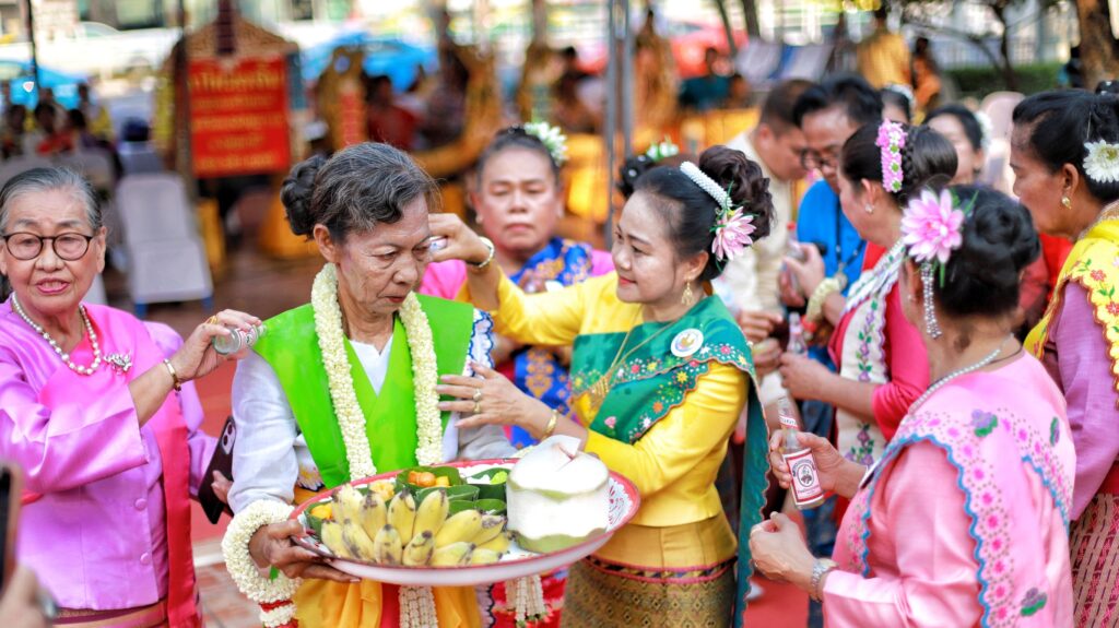 นายไพรัตน์ จันทร์แบบ ที่ปรึกษาพิเศษนายกองค์การบริหารส่วนจังหวัดปทุมธานี กล่าวว่า ชาวมอญมีประเพณีมอญสำคัญอย่างหนึ่ง สะท้อนความ “เป็นมอญ” ที่ฝรั่งนักวิชาการหลายคนระบุเหมือนกันว่า คนมอญมีอัตลักษณ์สำคัญโดดเด่นในเรื่องการนับถือผีบรรพชน นั่นคือ แม้จะยอมรับนับถือพุทธศาสนาและน้อมนำปฏิบัติอย่างเคร่งครัด แต่ผีบรรพชนที่มีมาแต่เดิมก็ยังคงเก็บรักษาไว้อย่างเหนียวแน่น