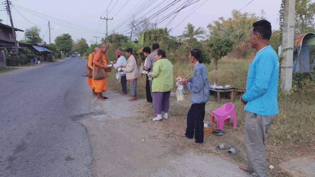 นครราชสีมา – โคราชหนาวจัด! ชาวบ้านพิมายสวมเสื้อหนาวฝ่าลมเย็น ร่วมทำบุญตักบาตรยามเช้าคึกคัก