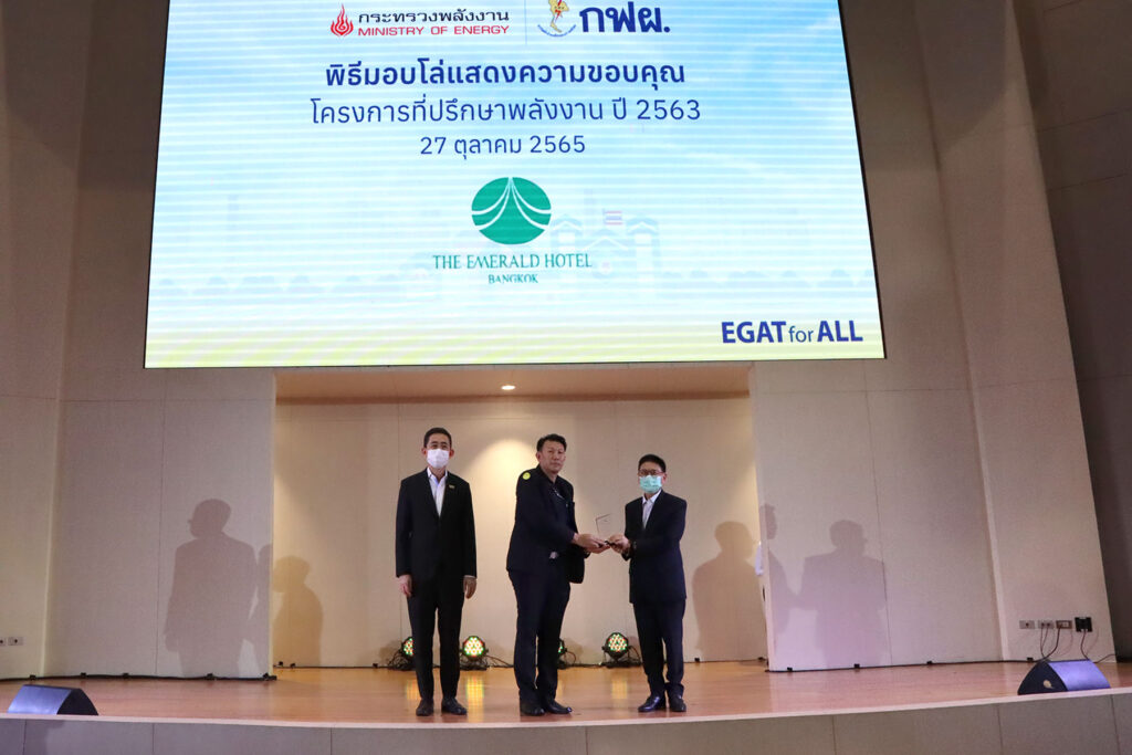 โรงแรม ดิ เอมเมอรัลด์ โดย สมบัติ บุญช่วย หัวหน้าช่าง เป็นตัวแทนรับมอบโล่ขอบคุณจาก กุลิศ สมบัติศิริ ปลัดกระทรวงพลังงาน จากการเข้าร่วมโครงการที่ปรึกษาพลังงานปี 2563 และประสบผลสำเร็จในการประหยัดไฟฟ้า โดยมี บุญญนิตย์ วงศ์รักมิตร ผู้ว่าการการไฟฟ้าฝ่ายผลิตแห่งประเทศไทย ร่วมยินดีด้วย ที่ห้องออดิทอเรียม อาคาร 50 ปี กฟผ. สำนักงานใหญ่ เมื่อบ่ายวันก่อน