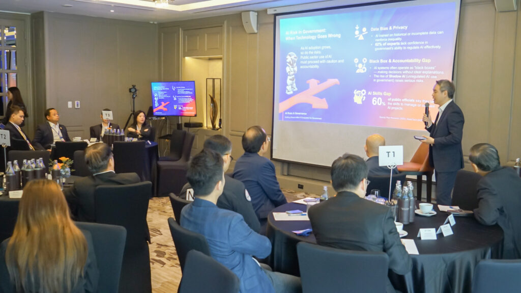 จากการเสวนาในหัวข้อดังกล่าวทำให้เห็นได้ชัดว่า AI ไม่ได้เป็นเพียงเครื่องมือทางเทคโนโลยีเท่านั้น แต่ยังเป็นทั้ง ‘โอกาส’ และ ‘ความท้าทาย’ ที่ภาครัฐและสังคมต้องเผชิญพร้อมกัน ซึ่งภัยคุกคามจาก AI ไม่ใช่เรื่องไกลตัวอีกต่อไป ดังนั้น การพัฒนา AI ให้เกิดผลอย่างเป็นรูปธรรมในภาครัฐ ไม่สามารถเกิดขึ้นได้โดยลำพัง แต่ต้องอาศัยความร่วมมือจากทุกภาคส่วน การทำงานร่วมกันอย่างเป็นระบบและมีเป้าหมายร่วม จะช่วยเร่งให้เกิดการเปลี่ยนผ่านทางดิจิทัลอย่างมีประสิทธิภาพ พร้อมทั้งวางรากฐานให้ประเทศไทยสามารถพัฒนาเทคโนโลยี AI ได้อย่างมั่นคง ปลอดภัย และมีอธิปไตยทางดิจิทัลเป็นของตนเองอย่างแท้จริง