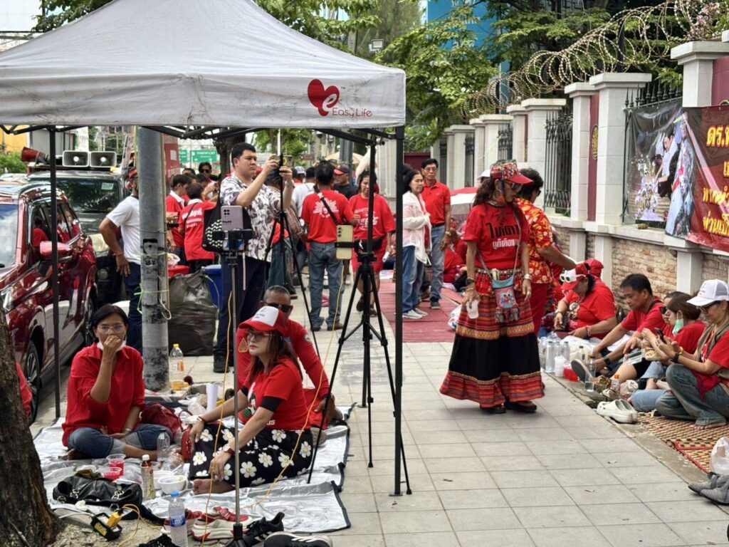 กลุ่มคนเสื้อแดงรวมพลังให้กำลังใจ “ทักษิณ” จัดกิจกรรมกินข้าวเย็นหน้าเรือนจำ