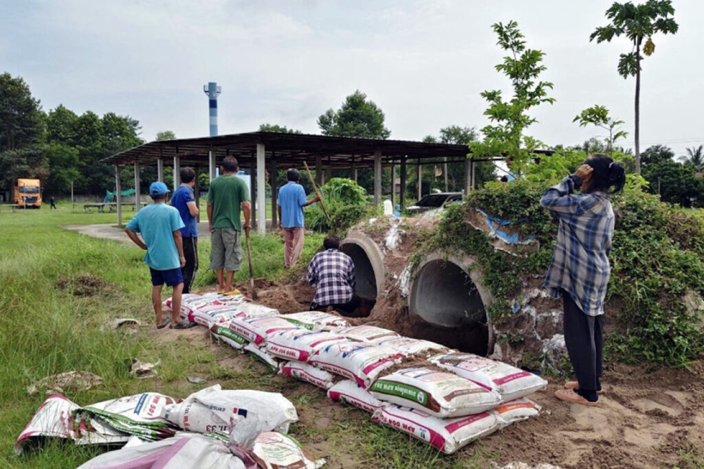 โดยในวันนี้ผู้นำชุมชนได้ประกาศเสียงตามสาย ขอความร่วมมือ และขอสนับสนุนจากชาวบ้าน นำเครื่องไม้เครื่องมือ อาทิ จอบ เสียม และกระสอบเปล่า นำมาสบทบช่วยกันกรอกกระสอบทรายจัดเรียงซ่อมแซมเพิ่มความแน่นหนา เพื่อสร้างความปลอดภัยและความอุ่นใจ ให้กับชาวบ้านหากเกิดสถานการณ์ก็พร้อมสามารถเข้าหลบภัยได้ชั่วคราว
