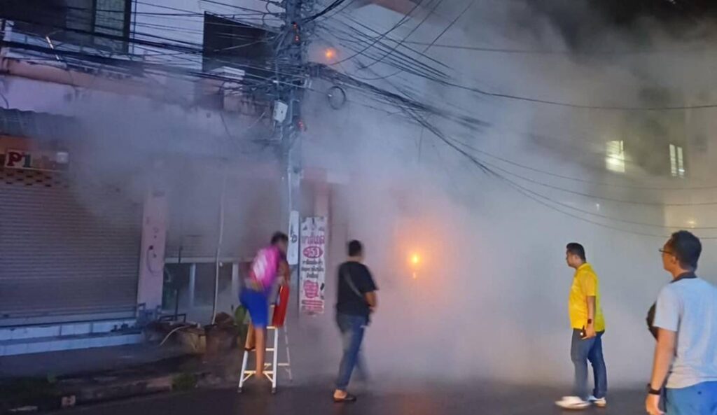 ชาวชัยภูมิผวา! สายสื่อสารระเบิดกลางเมือง ไฟลุกท่วมเสา ชุมชนร่วมใจดับก่อนลามเข้าบ้าน