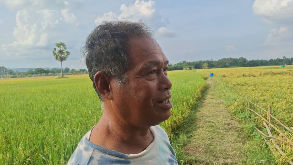 เมื่อวันที่ 12 พ.ย.2568 ผู้สื่อข่าวรายงานว่า ขณะนี้หลายพื้นที่ในจังหวัดนครราชสีมา กำลังเข้าสู่ช่วงฤดูเก็บเกี่ยวข้าวนาปีที่ปลูกเอาไว้ โดยเฉพาะนาของนายสุทัศน์ กลมเกลียว อายุ 57 ปี ชาวนาอำเภอสีคิ้ว จ.นครราชสีมา ที่ได้ปลูกข้าวเอาไว้ทั้งหมด 40 ไร่ ซึ่งข้าวในนาของนายสุทัศน์ฯนั้นกำลังออกรวงและพร้อมเก็บเกี่ยวในอีกไม่กี่สัปดาห์