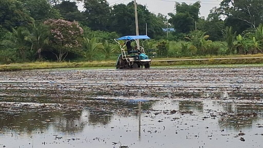ช่วงนี้กำลังเข้าสู่ช่วงข้าวนาปีหลายพื้นที่ในจังหวัดนครราชสีมากำลงมือหว่านและปักดำข้าวในช่วงนี้และบางส่วนยังได้นำเงินช่วยเหลือชาวนาที่ทางรัฐบาลได้จ่ายให้กับชาวนาไร่ละ 1,000 บาทคนละไม่เกิน 10 ไร่ มาลงทุนทำนา โดยที่แปลงนาของนางรุ่งณภา ยะวงค์ษา อายุ 64 ชาวนาอำเภอสีคิ้ว ซึ่งนางรุ่งณภาฯ กำลังใช้รถดำนาที่เพิ่งถอยออกมาใหม่ปักดำต้นข้าวในแปลงนา