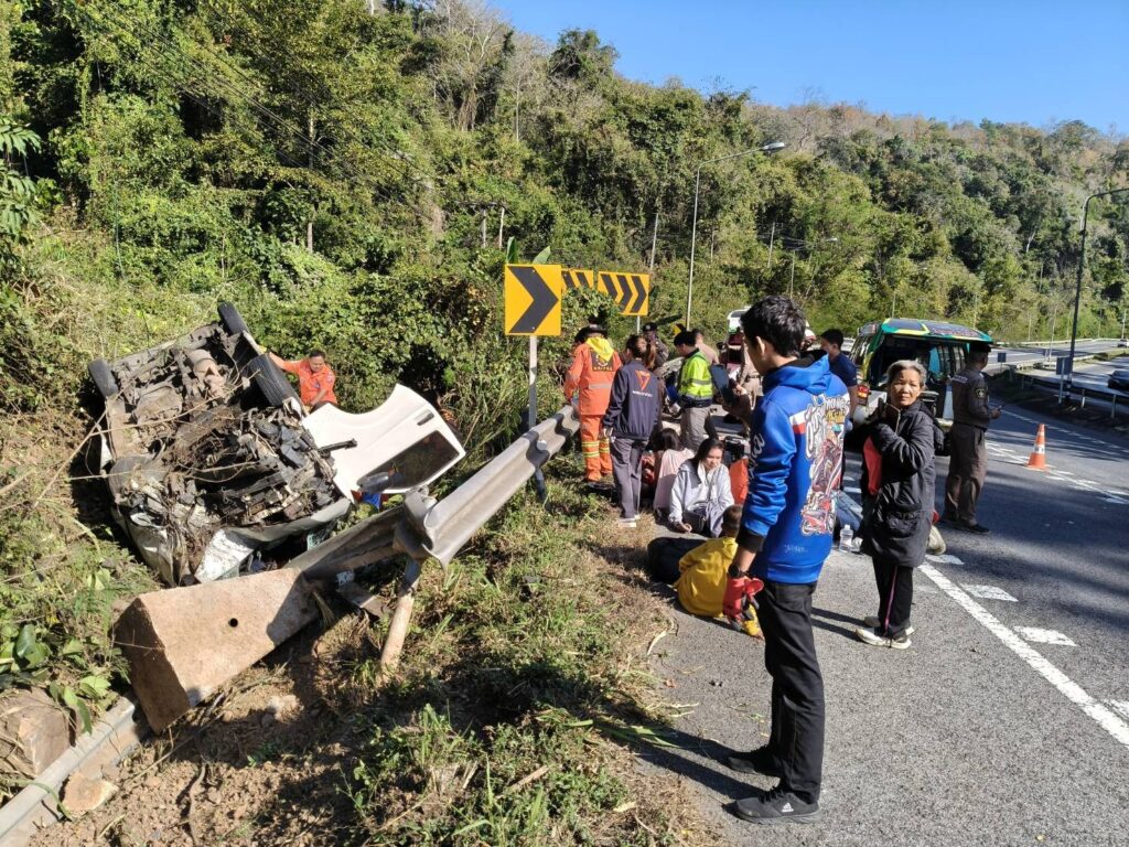 สลดรับใหม่ รถตู้หลับในพุ่งตกถนนสาย 304 โค้งมรณะอุดมทรัพย์ ดับ 2 เจ็บระนาว 14 ราย เร่งคลี่คลายสาเหตุและกำชับมาตรการป้องกันอุบัติเหตุซ้ำอีก