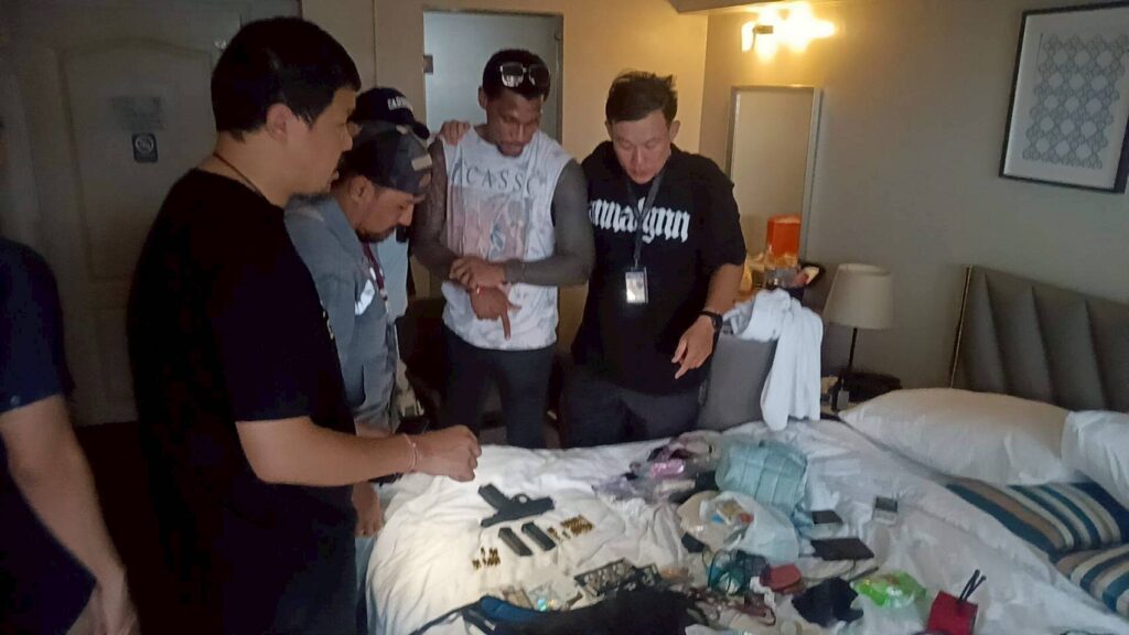 เบื้องต้นนั้น นายเอมมานูเอลฯ สามารถพูดภาษาไทยได้คล่องแคล่ว รับแต่โดยดี อยู่ในเมืองไทยมาตั้งแต่ปี 2559 จากการตรวจค้นห้องพัก พบอุปกรณ์เสพยา บริเวณชั้นวางทีวี ปืน 9 มม. 1 กระบอก มีเลขทะเบียนซ่อนอยู่ในซองหนังพกใน พบปืนแบลงค์กันดัดแปลงลำกล้อง พร้อมชุดลั่นไกมีเข็มแทงชนวน อีก 2 กระบอกพร้อมแม็กกาซีนดัดแปลง กระสุนปืนขนาด 9 มม., 11 มม. และ .22 นิ้ว รวมเกือบ 80 นัด มีทั้งที่บรรจุในแม็กกาซีนขึ้นลำพร้อมใช้ และซุกซ่อนตามจุดต่างๆในห้องพัก