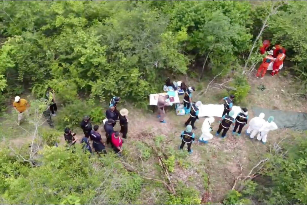 ต่อมา เวลา 11.00 น. พล.ต.ท.นัยวัฒน์ ผะเดิมชิต ผบช.ภ.7 พล.ต.ต.พรชัย ชลอเดช ผบก.ภ.จว.กาญจนบุรี พล.ต.ต.ประสพชัย มัตสยะวนิชกูล ผบก.สส.ภ.7 พ.ต.อ.พิพัฒน์ รุ่งสัมพันธ์ รอง ผบก.ภ.จว.กาญจนบุรี พ.ต.อ.สุรยุทธ์ เมฆมังกร ผกก.สภ.เมืองกาญจนบุรี พ.ต.อ.มานะ สำราญวงศ์ ผกก.สส.ภ.จว.กาญจนบุรี พ.ต.อ.เตชิน บรรจง ผกก.สภ.ลาดหญ้า ว่าที่ร้อยตรีธนายุทธ พินิจมนตรี ปลัดฝ่ายความมั่นคงอำเภอเมืองกาญจนบุรี นายมารุต เสือส่าน กำนันตำบลลาดหญ้า ร่วมเดินทางมาที่เกิดเหตุ โดยจะมีจุดรวมพลห่างจากจุดที่พบศพ 4 กิโลเมตร ต้องใช้การเดินทางด้วยรถโฟร์วิล โดยให้เจ้าหน้าที่พิสูจน์หลักฐานจากศูนย์พิสูจน์ภาค 7 และพิสูจน์หลักฐานกาญจนบุรี พร้อมแพทย์เวรสอบสวนจากโรงพยาบาลพหลพลพยุหเสนาเข้าที่เกิดเหตุก่อน เพื่อทำการชันสูตรพลิกศพ และเก็บพยานหลักฐานในที่เกิดเหตุ ต่อมาอีก 1 ชั่วโมง สื่อมวลชนและมูลนิธิจึงได้เข้าไปในจุดที่พบศพ