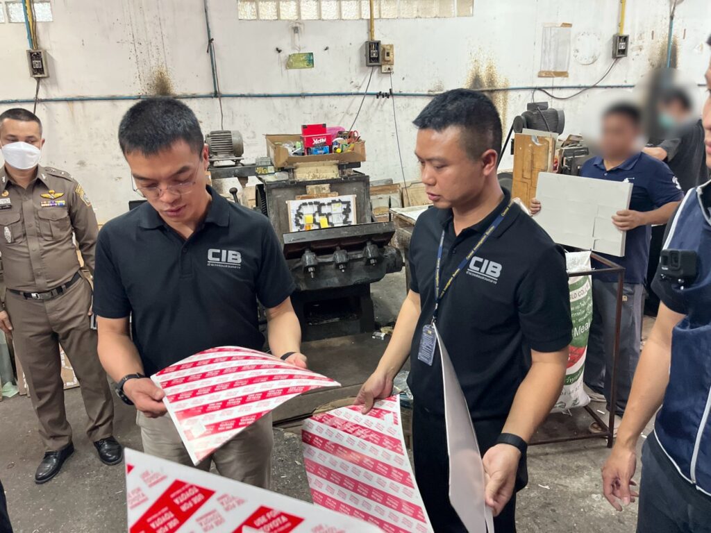 ตำรวจบุกจับคาแท่นพิมพ์! ทลายโรงงานผลิตกล่อง & อะไหล่รถยนต์ปลอมครบวงจร ปั๊มตราเนียนกริบ ยึดแท่นพิมพ์และของกลางกว่า 2,000 ชิ้น
