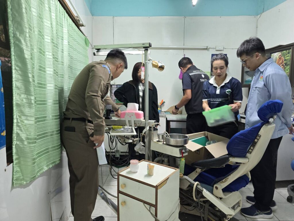 จากการตรวจสอบพบว่าภายในเปิดเป็นร้านที่ให้บริการรับทำฟันปลอมให้แก่ประชาชนทั่วไป มีอุปกรณ์และเครื่องมือต่างๆ สำหรับใช้ทำฟันปลอม แต่สภาพโดยทั่วไปของสถานที่มีลักษณะสกปรก การจัดเก็บอุปกรณ์ต่างๆ พบว่าไม่ถูกสุขลักษณะ มีโอกาสเสี่ยงต่อการปนเปื้อนเชื้อโรค