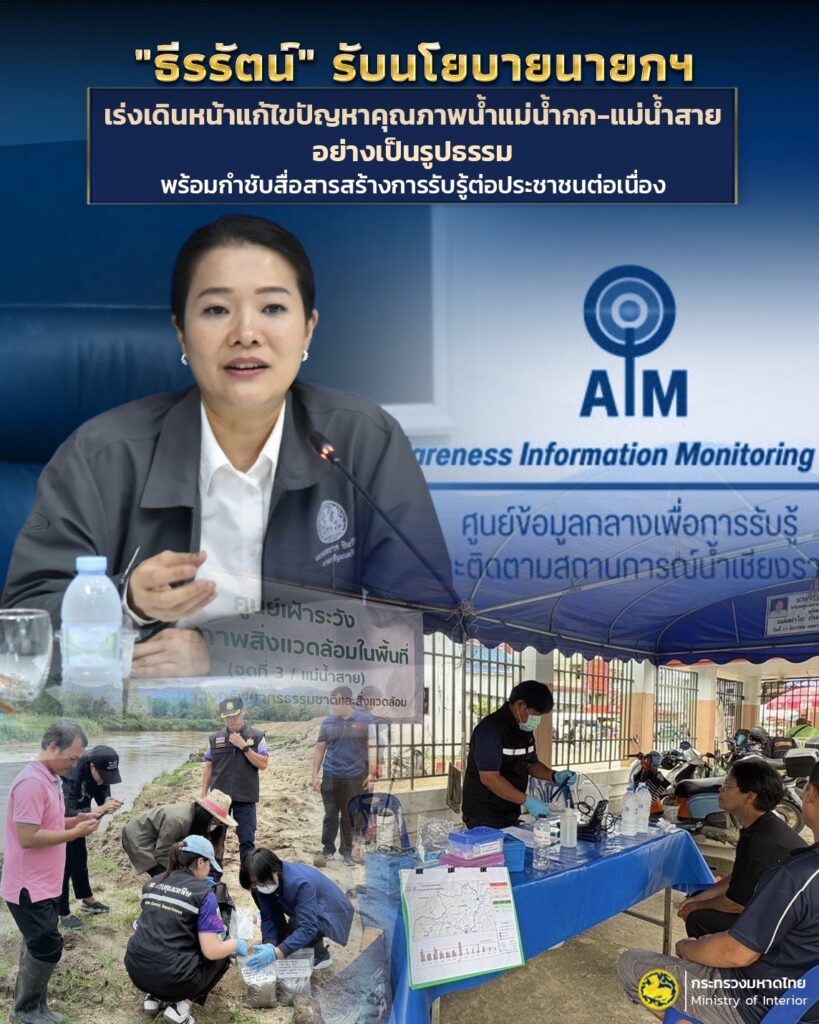 “รัฐบาลให้ความสำคัญสูงสุดต่อความปลอดภัยในการใช้น้ำของประชาชนในทุกมิติ ทั้งน้ำเพื่อการอุปโภค บริโภค เกษตรกรรม ควบคู่การอนุรักษ์สิ่งแวดล้อม พร้อมกำชับให้หน่วยงานที่เกี่ยวข้องดำเนินการตรวจสอบคุณภาพน้ำอย่างเข้มงวด ไม่ว่าจะเป็นน้ำประปา สัตว์น้ำ พืชผลทางการเกษตร รวมถึงสุขภาพของประชาชน ซึ่งได้มีการเก็บตัวอย่าง ตรวจวิเคราะห์ และรายงานผลอย่างต่อเนื่อง เพื่อให้ประชาชนสามารถใช้น้ำได้อย่างมั่นใจและปลอดภัย นอกจากนี้ ยังได้สั่งการให้จังหวัดเชียงรายและจังหวัดเชียงใหม่ เร่งสำรวจผลกระทบทั้งทางตรงและทางอ้อมที่ประชาชนได้รับจากปัญหาคุณภาพน้ำ รวมถึงให้จัดเวทีสาธารณะในระดับชุมชน เพื่อเปิดพื้นที่ให้ประชาชนได้แสดงความคิดเห็น เสนอแนะแนวทางการแก้ไข และร่วมกำหนดอนาคตของการพัฒนาในพื้นที่อย่างยั่งยืน พร้อมมอบหมายให้กระทรวงทรัพยากรและสิ่งแวดล้อมจัดตั้งศูนย์เฝ้าระวังสิ่งแวดล้อมในพื้นที่ ชี้แจงสถานการณ์คุณภาพน้ำ และตอบข้อกังวลของประชาชน ทั้งทางเฟซบุ๊ก “ศูนย์ข้อมูลกลางเพื่อการรับรู้และติดตามสถานการณ์น้ำเชียงราย (AIM)” และทุกช่องทางสื่อสาร อาทิ หอกระจายข่าว เสียงตามสาย วิทยุชุมชน โดยประเด็นที่เป็นถูกสอบถามมากที่สุดคือผลกระทบต่อสุขภาพของประชาชน และต่อพืชผลทางการเกษตรด้วย” น.ส.ธีรรัตน์ กล่าว