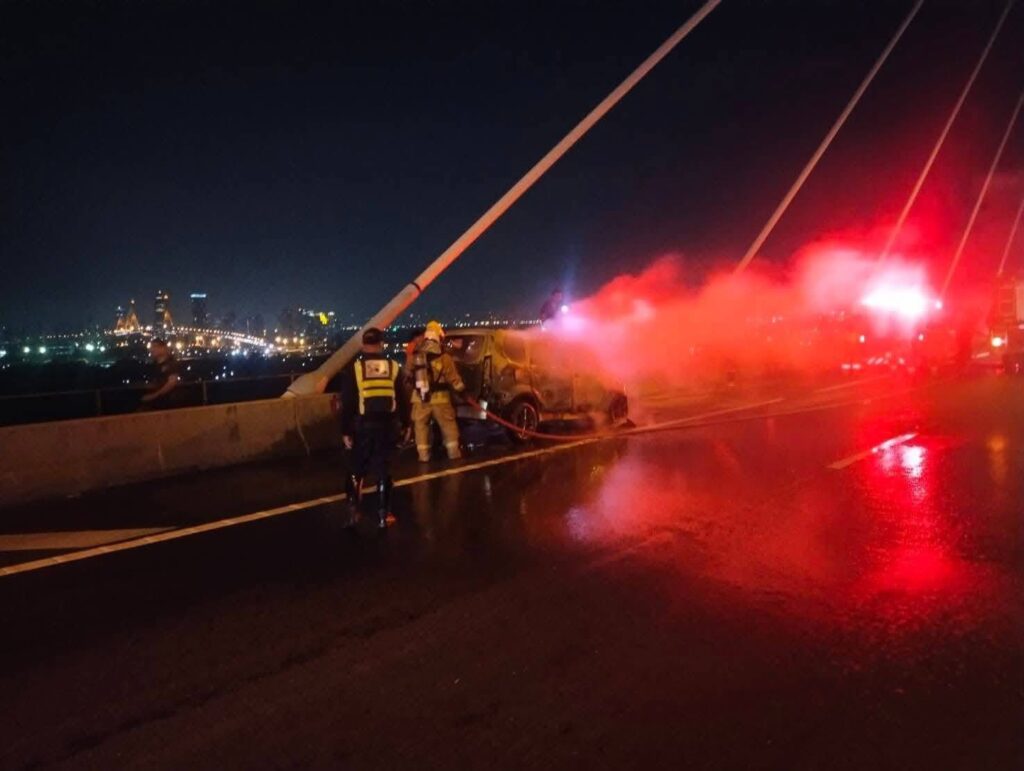 พ.ต.ท. ปพนเอก บุญอนันต์ สว.(สอบสวน )สภ.พระประแดง จ.สมุทรปราการ ได้รับแจ้งเมื่อเวลา 19.30 น.วันที่ 11 ธ.ค 2568 มีเหตุไฟไหม้รถยนต์กลางสะพาน กาญจนาภิเษกทิศทางถนนพระราม2 มุ่งหน้าถนนบางนา ได้ประสานขอรถน้ำดับเพลิงจากเทศบาลเมืองลัดหลวงพร้อมด้วยเจ้าหน้าที่กู้ภัยทางด่วนและอาสาสมัครมูลนิธิป่อเต็กตึ๋ง เข้าช่วยเหลือที่เกิดเหตุ