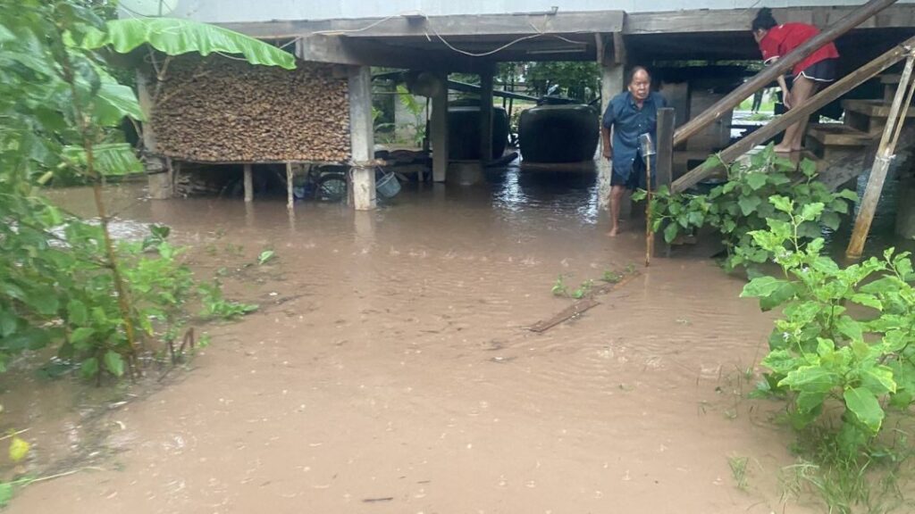 อิทธิพลพายุ “วิภา”ทำให้ฝนตกหนัก ดอกคำใต้น้ำเริ่มเอ่อ! น้ำร่องช้างบ้านปินล้นท่วม ชาวบ้านเร่งขนของ-วางกระสอบทรายรับมือ