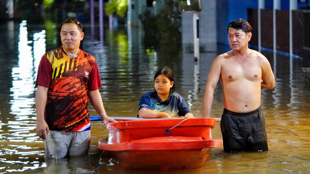 เมื่อเวลา 22.00น.วันที่ 6 ตุลาคม 2568 ผู้สื่อข่าวลงพื้นที่ชุมชนวัดสามัคคิยาราม(วัดเมี่ยง) ซอยบ้านสามเรือน ตำบลคลองควาย อำเภอสามโคก จังหวัดปทุมธานี น้ำเจ้าพระยาได้เอ่อล้นท่วมเส้นทางเข้าออกเป็นไปด้วยความยากลำบากเนื่องจากระดับน้ำท่วมสูงเกินกว่า 1 เมตรต้องใช้เรือในการสัญจรเข้าออกทุกหลังคาเรือนซึ่งชาวบ้านบอกว่าอยู่ชุมชนริมน้ำ เป็นเรื่องที่เคยชิน ที่ผ่านมาได้เตรียมตัวไว้แล้วด้วยนำรถยนต์ออกมาจอดไว้ข้างนอกบนที่สูง แต่ก็ต้องพายเรือออกมาจากซอย แล้วเดินออกไปเอารถข้างนอกเพื่อทางไปทำงาน ชาวบ้านเผยสู้ทุกปี แม้เหนื่อยแต่ไม่รู้จะย้ายไปอยู่ที่ไหน