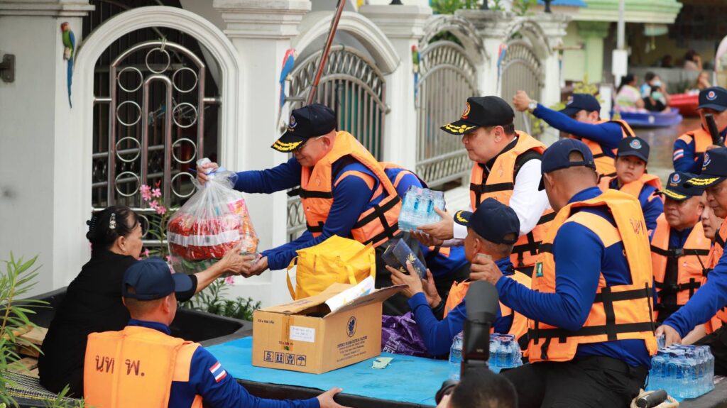 ผบ.ทสส.ลุยน้ำมอบถุงยังชีพ-เปิดครัวสนามแจกข้าวกล่องผู้ประสบอุทกภัยสามโคก