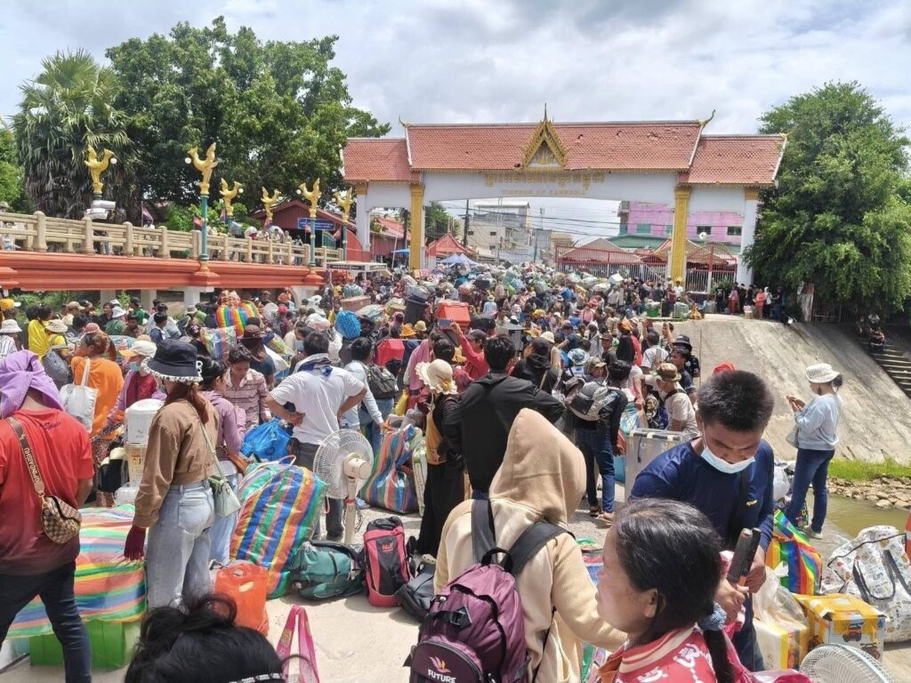 ชายแดนไทย-กัมพูชา ปะทะเดือดตลอดแนวชายแดน ทำให้แรงงานกัมพูชากลัวไม่ปลอดภัยแห่กลับประเทศ ล้นหน้าด่านบ้านแหลมกว่าหมื่นคน บางรายยอมรับต้องจำใจกลับ บอกหลังเหตุการณ์สงบ จะกลับมาทำงานในไทยเหมือนเดิม