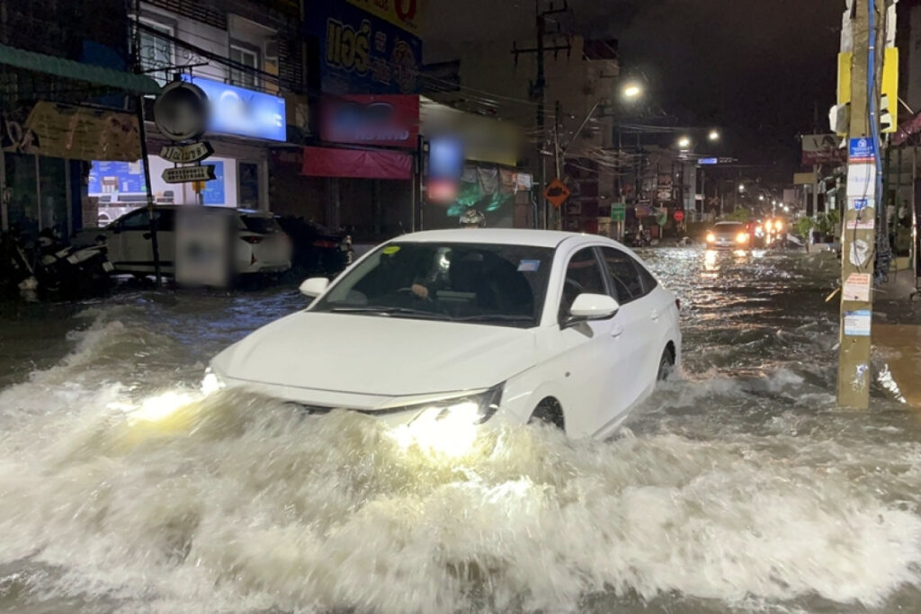 ฝนตกหนักนานกว่า 3 ชั่วโมง น้ำท่วมถนนฉับพลันหลายจุดทั่วเมืองพัทยา