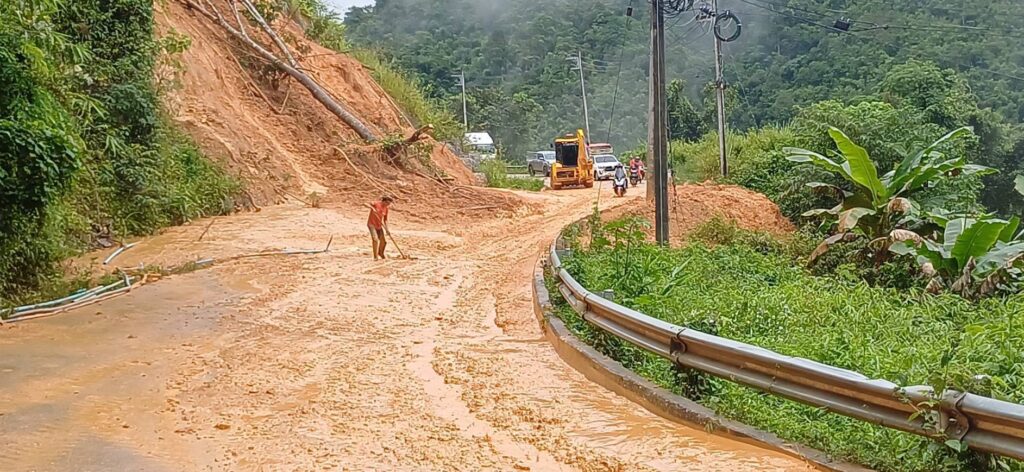 ตาก-ฝนตกหนัก ดินจากภูเขา สไลด์ทับเส้นทาง ถนนสาย แม่สอด-พบพระ –อุ้มผาง   หลัก กม. 68 +ช่วง อ.พบพระ อ.อุ้มผาง