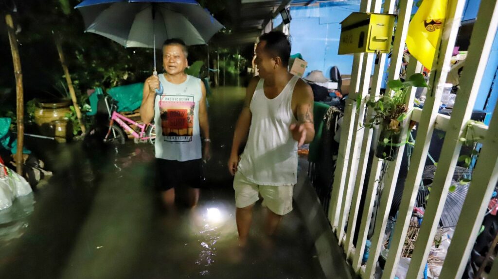 ฝนถล่มปทุมธานีนายกสวนพริกไทยลุยฝนตั้งเครื่องสูบน้ำเร่งช่วยชาวบ้าน