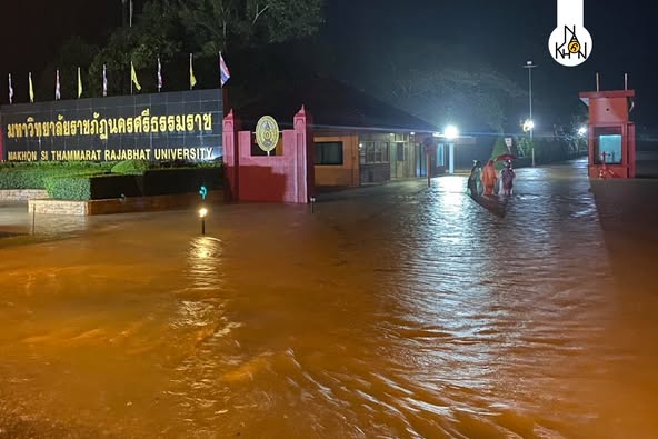 นอกจากนี้ที่ถนนหน้ามหาวิทยาลัยราชภัฎนครศรีธรรมราช ก็มีน้ำเอ่อเข้าท่วมแล้วเช่นกัน รวมทั้งพื้นที่ใกล้เคียงด้วย และปริมาณน้ำอาจเพิ่มสูงขึ้น ให้ประชาชนเฝ้าระวังและเตรียมยกของขึ้นที่สูงหรือต้องอพยพ