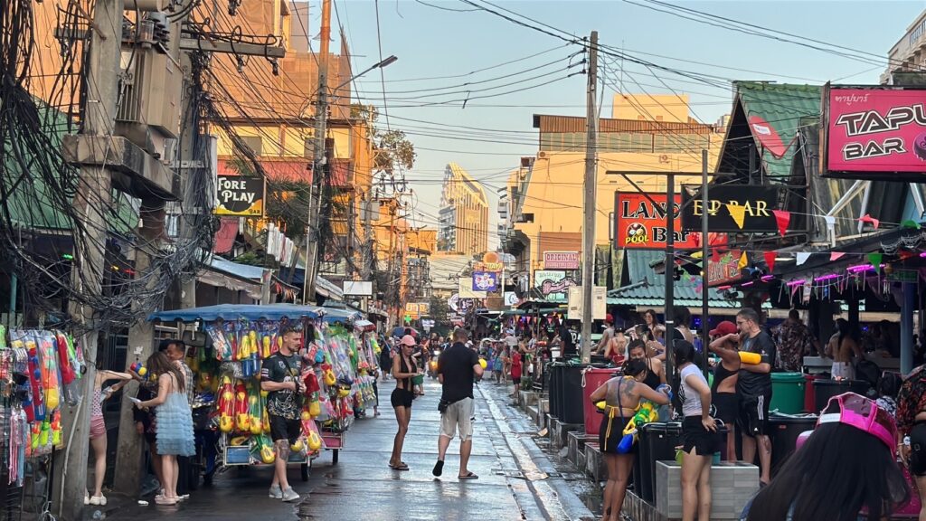 ภายในซอยดังกล่าวพบว่า นักท่องเที่ยวทั้งชาวไทยและชาวต่างชาติทยอยออกมาร่วมเล่นน้ำอย่างต่อเนื่อง ส่วนใหญ่นำปืนฉีดน้ำออกมาร่วมวง สาดน้ำใส่กันอย่างสนุกสนานร่วมกับพนักงานบาร์เบียร์ ส่งผลให้บรรยากาศเต็มไปด้วยความครึกครื้น เสียงหัวเราะ และความชุ่มฉ่ำตลอดแนวถนน