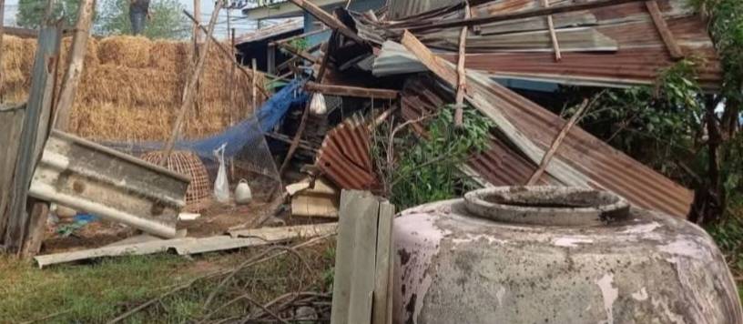 พายุกระหน่ำยามเช้ามืด! บ้านหนองห้างระส่ำ คอกสัตว์พังเสียหายกลางแรงลม