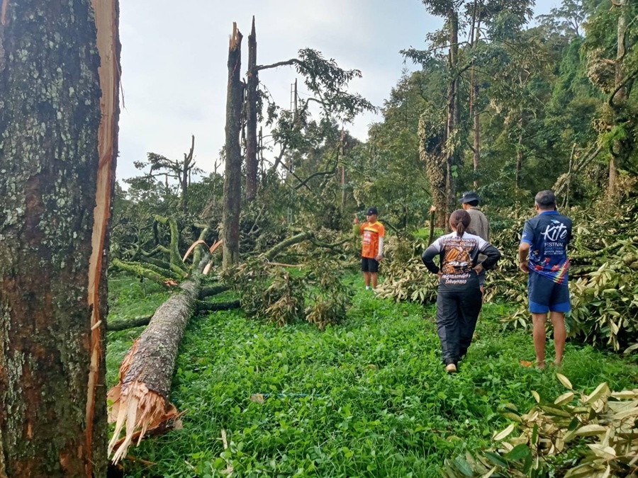 เกิดเหตุลมพายุพัดรุนแรงในพื้นที่บ้านถ้ำผึ้ง หมู่ที่ 5 ต.ต้นยวน อ.พนม จ.สุราษฎร์ธานี ทำให้เกิดต้นไม้ใหญ่ล้มพาดสายไฟฟ้าแรงสูงขาด และมีต้นไม้ล้มทับบ้านเรือนประชาชนได้รับความเสียหาย จำนวน 12 หลังคาเรือน