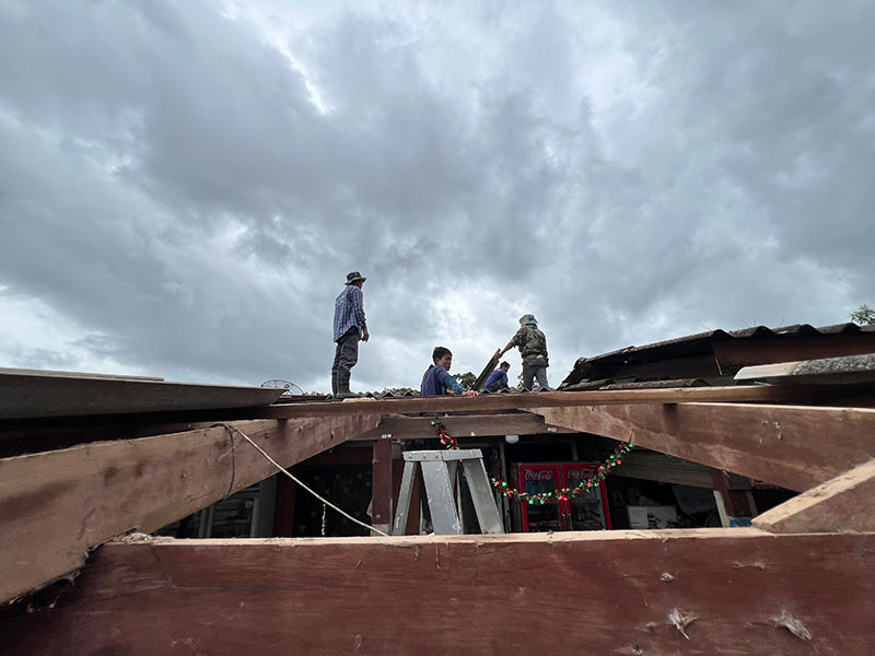 ตราด-พายุฝนหอบลมกระโชกแรง กระหน่ำบ้านฉางเกลือวูบเดียวซัดทำบ้านเรือนในพื้นที่อำเภอเมืองเสียหายนับ 10 หลัง