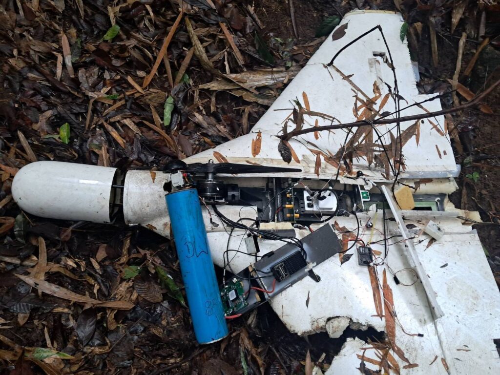 หน่วยเฉพาะกิจกรมทหารพรานที่ 35 โดยร้อย ทพ.3502 ได้รับแจ้งจากราษฎรบ้านขุนแม่เหว่ย ต.ท่าสองยาง อ.ท่าสองยาง จ.ตาก ว่าพบอากาศศยานไร้คนขับ ( โดรน ) ตกในป่าห่างจากตัวหมู่บ้านประมาณ 5 กม. ทางเจ้าหน้าที่ทหารพราน จึงได้จัดกำลังรุดไปตรวจสอบ เมื่อไปถึงจุดที่โดรนตก พิกัด LV 84113 60146. หมู่ 5 ต.ท่าสองยาง อ.ท่าสองยาง พบอากาศยานไร้คนขับ หรือโดรนแบบกามิกาเซ่ จำนวน 1 ลำ ประกอบด้วยแบตเตอรี่ จำนวน 1 ก้อน , ตัวรับสัญญาณมอเตอร์ จำนวน 1 ตัว และ ถังแก๊สกระบอกติดกับหัวเครื่องบิน (คาดว่าเป็นหัวระเบิด) ตัวเลข DW 06 ล่าง 85 จำนวน 1 ลูก
