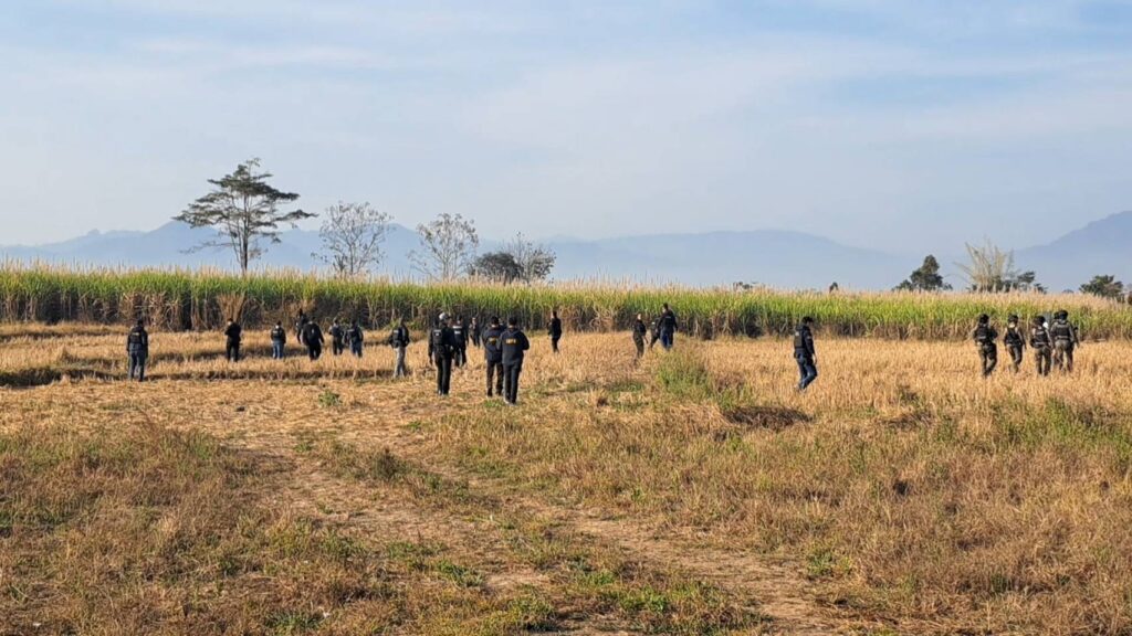 พร้อมทีมสุนัขดมกลิ่น และเจ้าหน้าที่ที่เกี่ยวข้อง ยังระดมกำลังนับ 100 นาย เดินเท้าปูพรม โดยเฉพาะบริเวณ ไร่อ้อย ซึ่งอยู่ไม่ไกล จุดเกิดเหตุ ที่คาดว่าคนร้ายอาจจะกบดานหลบซ่อนตัวอยู่ โดยมีรายงานล่าสุด เจ้าหน้าที่ พบคนร้ายได้ถอดเสื้อ กางเกงและอาวุธปืนทิ้งไว้บริเวณริมชายป่า ใกล้ไร่อ้อย