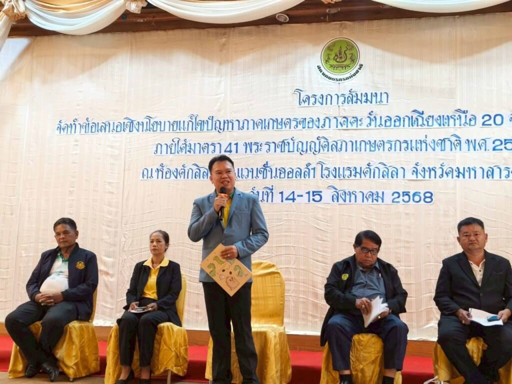 สภาเกษตรกรแห่งชาติ ระดมสมอง 20 จังหวัดอีสาน ดันข้อเสนอเชิงนโยบายแก้ปัญหาเกษตรกรรมสู่ระดับชาติ ณ ห้องประชุมตักสิลาคอนเวนชั่นฮอลล์ 1 โรงแรมตักสิลา จังหวัดมหาสารคาม