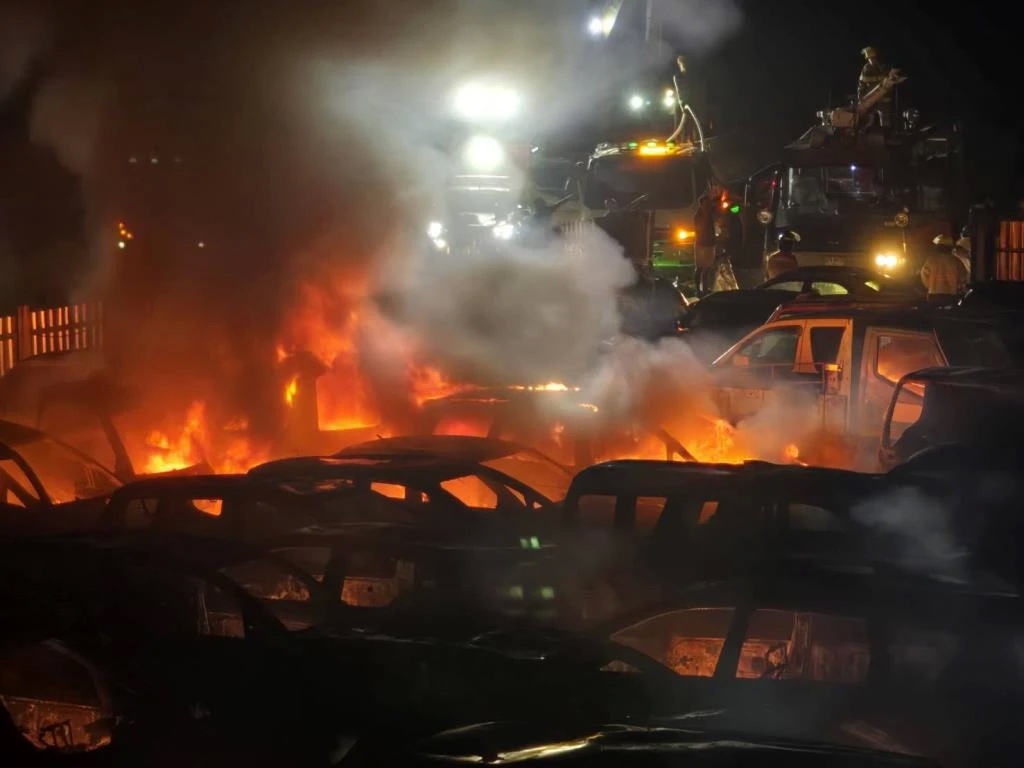 ที่เกิดเหตุเป็นลานจอดรถยนต์ขนาดใหญ่มีรั้วรอบขอบชิด ที่ลานจอดรถฝั่งทิศตะวันออกโซนด้านหน้าพบรถยนต์จำนวนหลายสิบคันกำลังถูกเพลิงไหม้อย่างรุนแรงและมีเสียงระเบิดดังมาเป็นระยะ แสงเพลิงสูงนับสิบเมตรและกลุ่มควันไฟสีดำลอยโพยพุ่งขึ้นสู่ท้องฟ้าเหนือแนวชายแดนไทย-เมียนมา โดยประชาชนทั้งฝั่งไทยและฝั่งจังหวัดเมียวดี ประเทศเมียนมา สามารถมองเห็นเปลวเพลิง-กลุ่มควันไฟได้อย่างชัดเจน