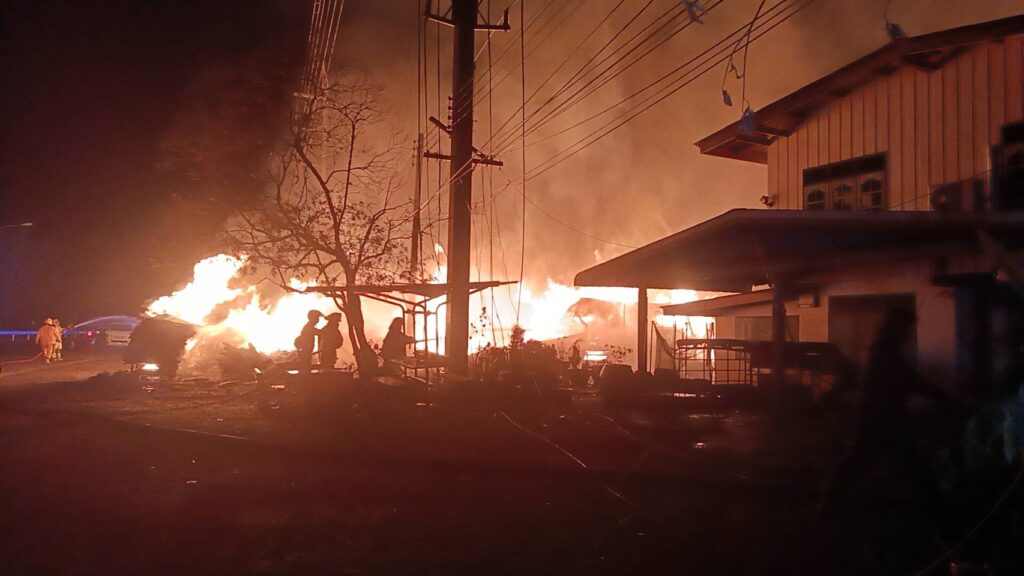 ปราจีนบุรี – ระทึกกลางดึก ไฟไหม้โกดังร้านซื้อขายไม้พาเลทเสียหายทั้งหลังนานกว่า 4 ชม.หลังเพลิงสงบคุ้ยหาทองคำได้คืน หนัก 2บาท ส่วนไฟไหม้เงินสดไป 3 แสนกว่าบาทหายวับไปกับกองไฟ