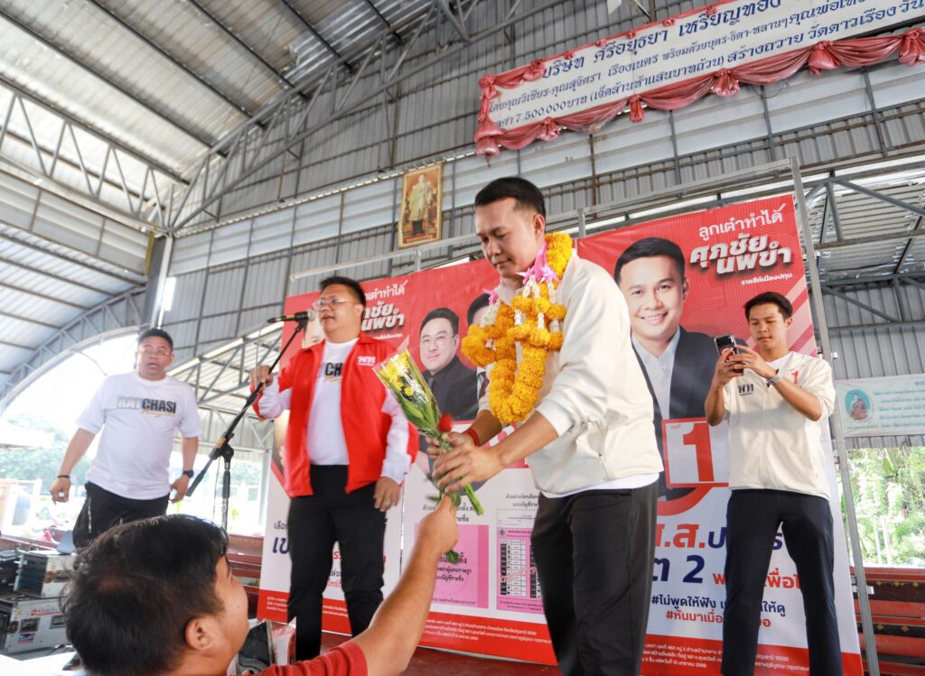 เมื่อวันที่ 1 กุมภาพันธ์ 2569 บรรยากาศการหาเสียงในช่วงโค้งสุดท้ายก่อนเลือกตั้งวันที่ 8 ก.พ.นี้ว่า ยังคงเดินหน้าลงพื้นที่อย่างต่อเนื่องโดยไม่หยุดพัก นายศุภชัย นพขำ (ลูกเต๋า) ผู้สมัคร สส. พรรคเพื่อไทย หมายเลข 1 เขต 2 จังหวัดปทุมธานี พร้อมทีมงาน ลงพื้นที่เปิดเวทีปราศรัย ณ โดมเอนกประสงค์ วัดดาวเรือง ตำบลบางพูด อำเภอเมือง จังหวัดปทุมธานี ท่ามกลางประชาชนที่มารอรับฟังอย่างเนืองแน่นกว่า 800 คน ท่ามกลางบรรยากาศคึกคัก ประชาชนเข้ามาทักทายและถ่ายภาพอย่างต่อเนื่อง