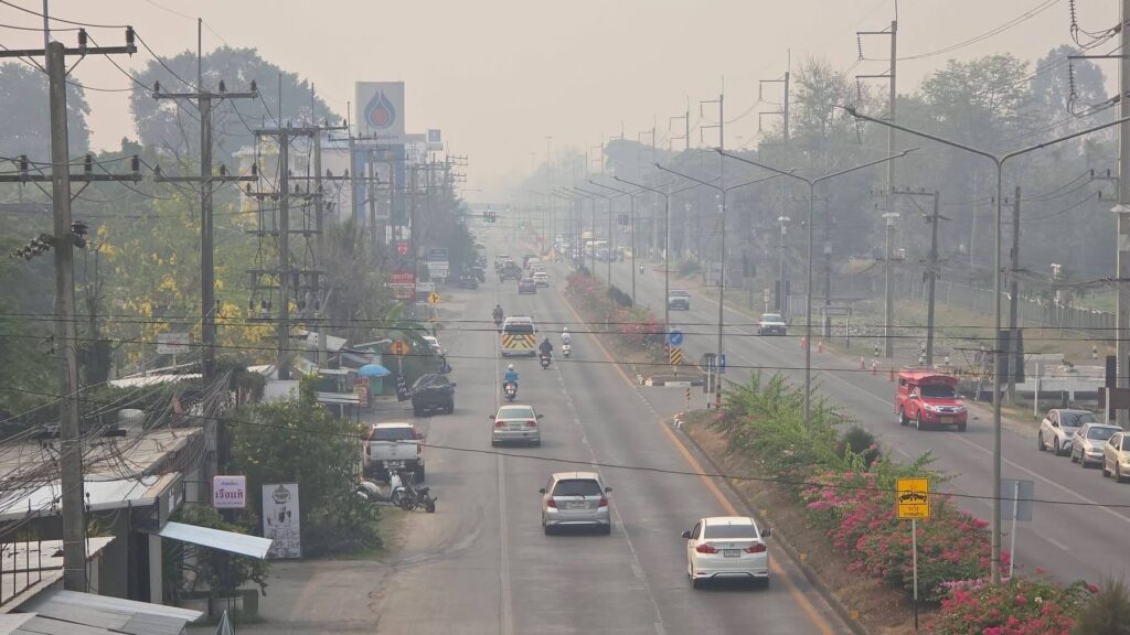 เมื่อวันที่ 4 เมษายน 2569 เวลา 09.00 น. สถานการณ์ฝุ่นควัน PM2.5 ในจังหวัดเชียงใหม่ยังคงวิกฤตต่อเนื่อง ล่าสุดมีภาพฝุ่นควันปกคลุมหนาทึบบริเวณโดยรอบโรงพยาบาลนครพิงค์