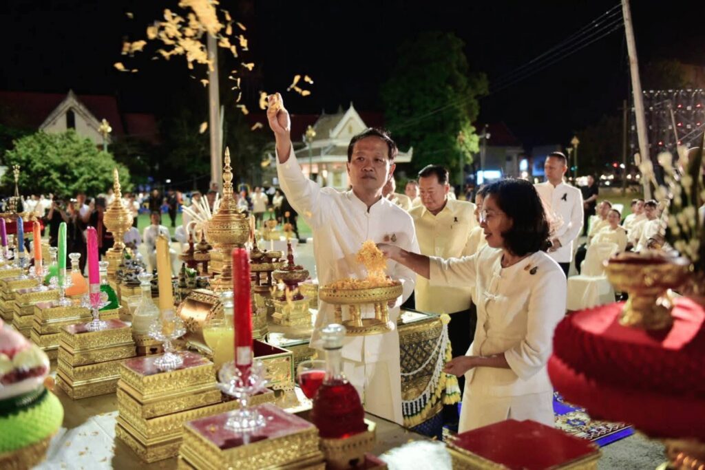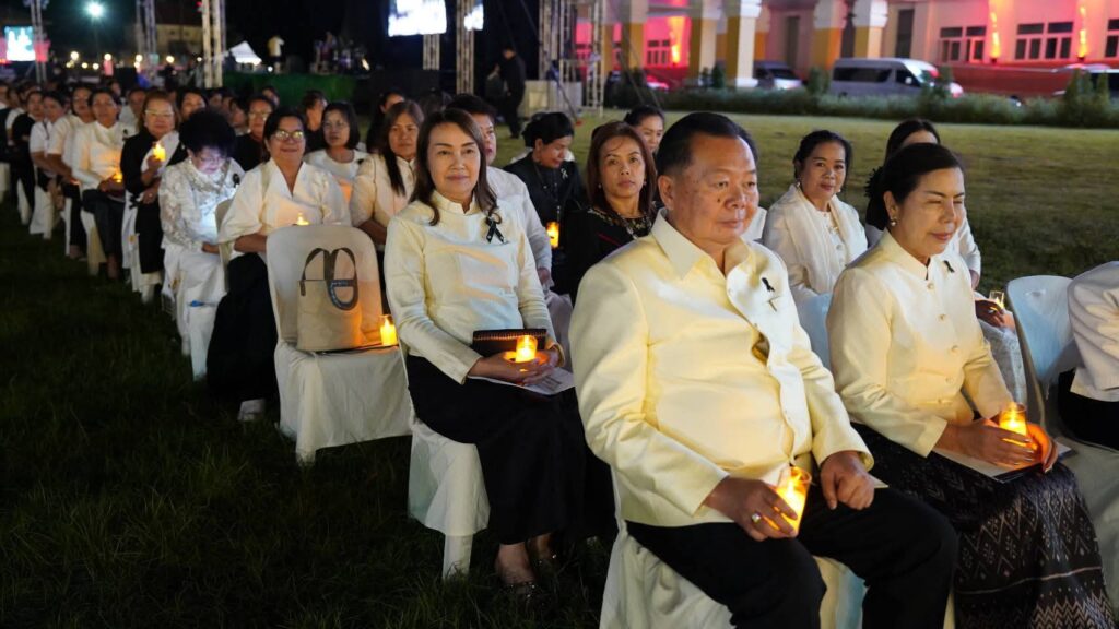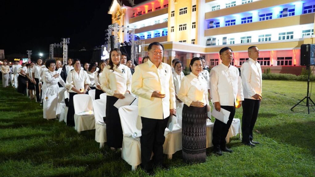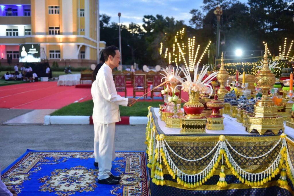 จังหวัดศรีสะเกษจัดพิธีสู่ขวัญบ้านบายศรีเมืองรุ่งเรือง 243 ปีและสวดพระพุทธมนต์ถวายเป็นพระราชกุศลแด่พระพันปีหลวง