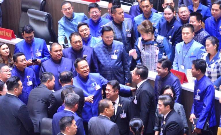 เมื่อวันที่ 19 มี.ค. 69 ผู้สื่อข่าวรายงานว่า ภายหลังการปิดประชุมสภาผู้แทนราษฎร นายอนุทิน ชาญวีรกูล หัวหน้าพรรคภูมิใจไทย ที่ได้รับเสียงสนับสนุนให้เป็นนายกรัฐมนตรี สมัยที่ 2 ได้รับการแสดงความยินดีจาก สส.ในสภา อาทิ นายอภิสิทธิ์ เวชชาชีวะ หัวหน้าพรรคประชาธิปัตย์ รวมถึงบรรดาแกนนำพรรคเพื่อไทย นำโดย 3 แคนดิเดตนายกรัฐมนตรี นายยศชนัน วงศ์สวัสดิ์ สส.บัญชีรายชื่อ นายสุริยะ จึงรุ่งเรืองกิจ สส.บัญชีรายชื่อ นายจุลพันธ์ อมรวิวัฒน์ หัวหน้าพรรค ได้พา สส.พรรคเพื่อไทย เข้าแสดงความยินดีด้วยเช่นกัน