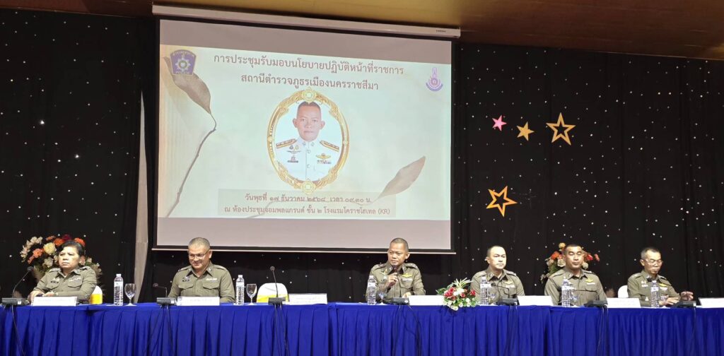 เมื่อวันพุธที่ 17 ธันวาคม 2568 ณ โรงแรมโคราชโฮเต็ล ตำบลในเมือง อำเภอเมือง จังหวัดนครราชสีมา พ.ต.อ.ศิริชัย ศรีชัยปัญญา ผู้กำกับการสถานีตำรวจภูธรเมืองนครราชสีมา เป็นประธานในการประชุมข้าราชการตำรวจประจำเดือน เพื่อติดตามผลการปฏิบัติงาน สถานการณ์ด้านความมั่นคง และขับเคลื่อนนโยบายการทำงานของสำนักงานตำรวจแห่งชาติให้เป็นไปอย่างมีประสิทธิภาพ